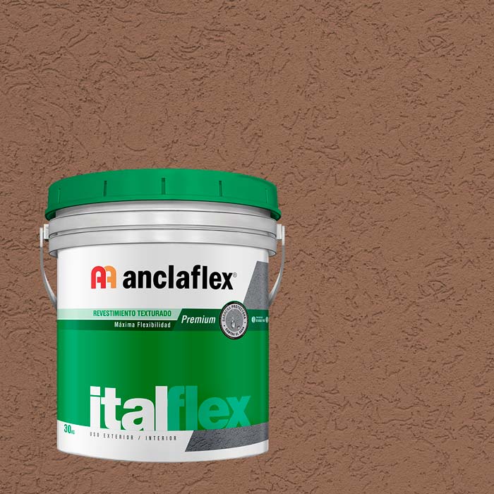 Italflex es un revestimiento acrílico texturable de base acuosa, con el agregado de minerales seleccionados y pigmentos que le confieren la apariencia de la piedra natural. Es ideal para disimular las imperfecciones de las superficies tratadas. Se presenta listo para usar y es de fácil y rápida aplicación. Al secar forma una película protectora impermeable de excelente flexibilidad y adherencia, resistente a los rayos UV y a los agentes atmosféricos. Admite su aplicación directamente sobre grueso alisado, reemplazando al revoque fino y a la pintura, permitiendo un ahorro significativo en costos de material y tiempos de mano de obra. Disponible en textura fina y mediana.