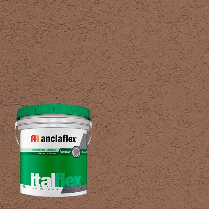 Italflex es un revestimiento acrílico texturable de base acuosa, con el agregado de minerales seleccionados y pigmentos que le confieren la apariencia de la piedra natural. Es ideal para disimular las imperfecciones de las superficies tratadas. Se presenta listo para usar y es de fácil y rápida aplicación. Al secar forma una película protectora impermeable de excelente flexibilidad y adherencia, resistente a los rayos UV y a los agentes atmosféricos. Admite su aplicación directamente sobre grueso alisado, reemplazando al revoque fino y a la pintura, permitiendo un ahorro significativo en costos de material y tiempos de mano de obra. Disponible en textura fina y mediana.